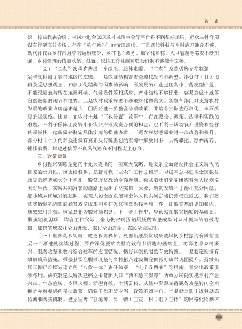 没有得到充分发挥,存在“单打独斗”的治理现状。三是现代科技与乡村治理融合不够。