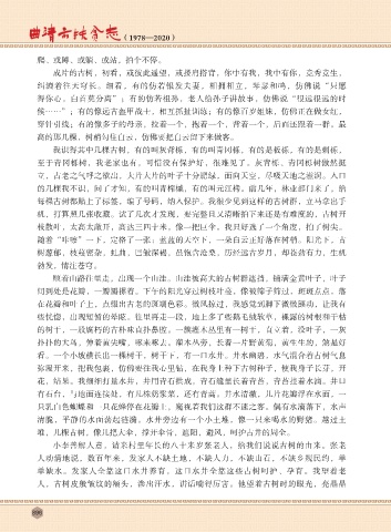 花,结果。我细细打量水井,井用青石拱成,青石缝里长着青苔,青苔挂着水滴。井口