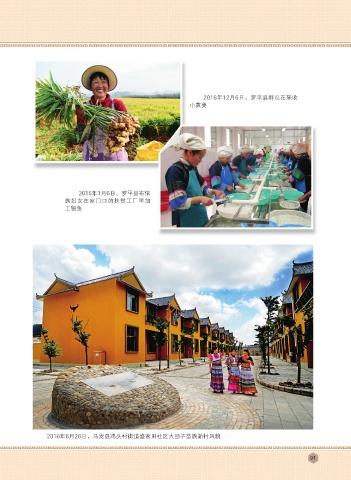 2016年12月6日,罗平县群众在采收 小黄姜 2015年1月6日,罗平县布依 族妇女在家门口的扶贫工厂里加 工银鱼 2016年6月26日,马龙县鸡头村街道盛家田社区大凹子苗族新村风貌 91