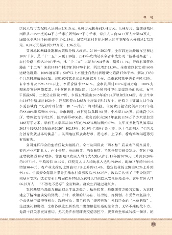 个自然村的通畅问题。实施农村饮水安全巩固提升工程,全市农村集中供水率95.02%,