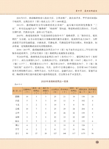至2020年底,曲靖邮政共有营业网点148个(农村117个)、储蓄网点50个(农村