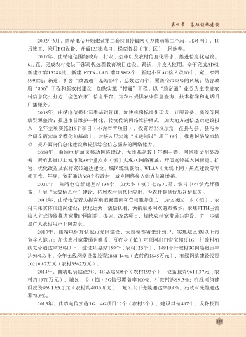 2015年,曲靖电信实施3G、4G项目12个(农村5个),建设基站497个,设备投资