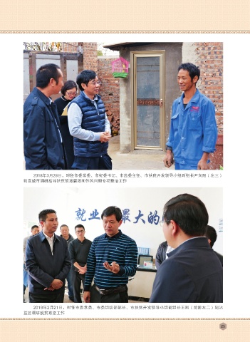 2018年3月28日,时任市委常委、市纪委书记、市监委主任、市扶贫开发领导小组副组长尹向阳(左三) 到宣威市调研指导扶贫领域腐败和作风问题专项整治工作 2019年2月21日,时任市委常委、市委组织部部长、市扶贫开发领导小组副组长王刚(前排左二)到沾 益区调研脱贫攻坚工作 25