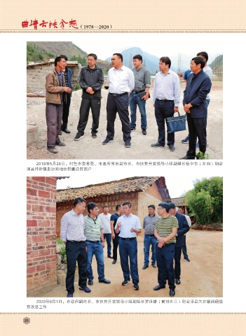 (1978—2020) 2018年5月26日,时任市委常委、市政府常务副市长、市扶贫开发领导小组副组长杨中华(左四)到会 泽县待补镇走访易地扶贫搬迁贫困户 2020年6月1日,市政府副市长、市扶贫开发领导小组副组长罗世雄(前排左三)到会泽县大井镇调研脱 贫攻坚工作 26