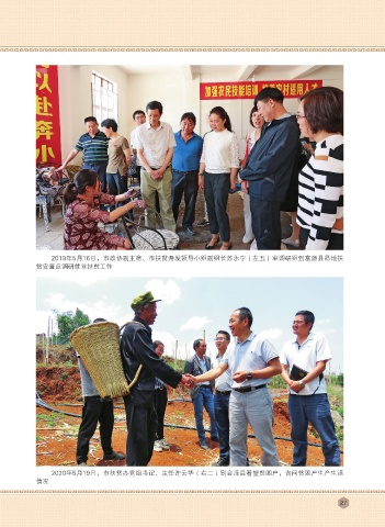 2019年5月16日,市政协副主席、市扶贫开发领导小组副组长苏永宁(左五)率调研组到富源县易地扶 贫安置点调研就业扶贫工作 2020年5月19日,市扶贫办党组书记、主任许云华(右二)到会泽县看望贫困户,询问贫困户生产生活 情况 27