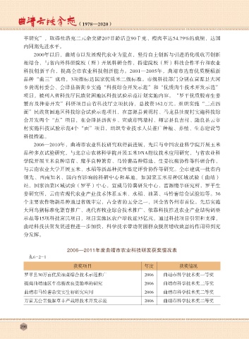 2006—2011年度曲靖市农业科技研发获奖情况表
