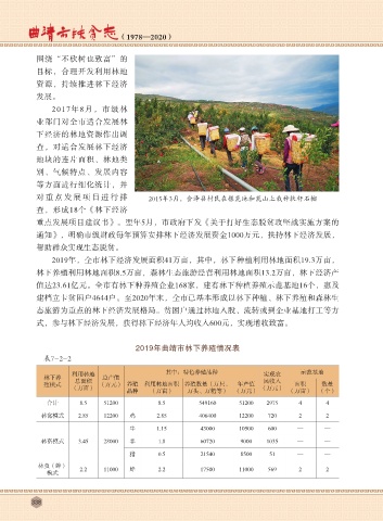 2019年,全市林下经济发展面积41万亩,其中,林下种植利用林地面积19.3万亩,