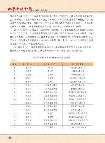 2020年曲靖市省级森林乡村分布情况表