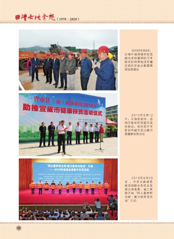(1978—2020) 2019年5月8日, 云南中烟调研组到宣 威市龙场镇调研卫生 院项目和易地扶贫搬 迁城区安置点配套基 础设施建设 2019年8月12 日,云南省政协、曲 靖市政协和宣威市政 协联动,组织医疗专 家到宣威市宝山镇开 展健康扶贫活动 2019年8月29 日 ,中共云南省委 统战部联合各民主党 派云南省委、省工商 联开展“同心圆梦彩 云南·聚力脱贫攻坚 战”行动 38