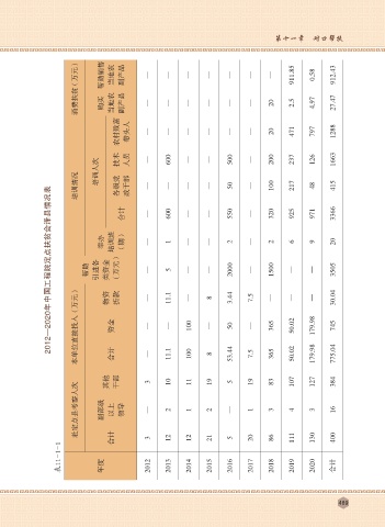 表11-1-1 年度 合计 3 2012 12 2013 12 2014 21 2015 5 2016 20 2017 86 2018 111 2019 130 2020 400 合计