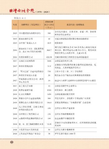 年度 捐赠单位(发起单位) 折合人民币 捐款用途 / 捐赠物品