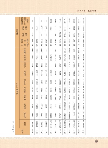 续表12-2-2 年份 合计 38174.5 2010 43389.1 2011 47031.7 2012 51040.2 2013 57464.91 2014 58491.74 2015 126111.32 2016 151602.02 2017 86004.22 2018 47634.45 2019 45576.45 2020 905931.59 合计