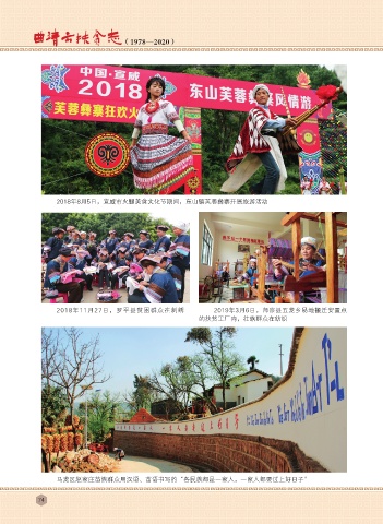 (1978—2020) 2018年8月5日,宣威市火腿美食文化节期间,东山镇芙蓉彝寨开展旅游活动 2018年11月27日,罗平县贫困群众在刺绣 2019年3月6日,师宗县五龙乡易地搬迁安置点 的扶贫工厂内,壮族群众在纺织 马龙区赵家庄苗族群众用汉语、苗语书写的“各民族都是一家人,一家人都要过上好日子” 74