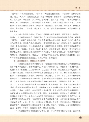 贫困人口退出组织实施工作。修订完善扶贫工作考核评估指标和贫困退出指标,对超出