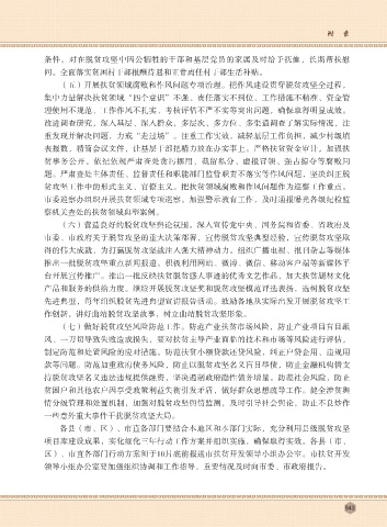 制定防范和处置风险的应对措施。防范扶贫小额贷款还贷风险,纠正户贷企用、违规用